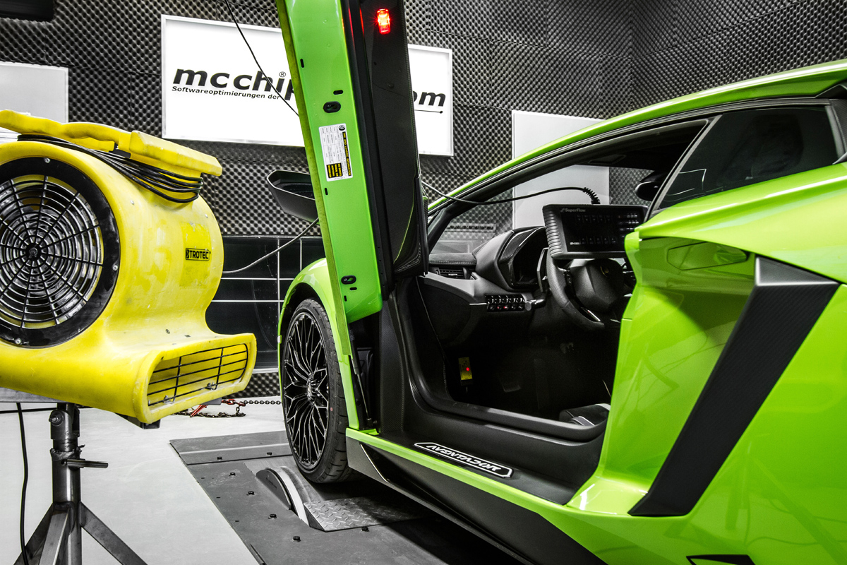 The factory output of 740 horsepower and 507 lb-ft. of torque in the Lamborghini Aventador LP 750-4 SV is nothing short of impressive. After the McChip-DKR level 2 software tune and mcpipes hardware installation, the V-12 engine produces a whopping 781 horsepower and 537 lb-ft. of torque – 41 horsepower and 30 lb-ft. of torque more than the factory output.