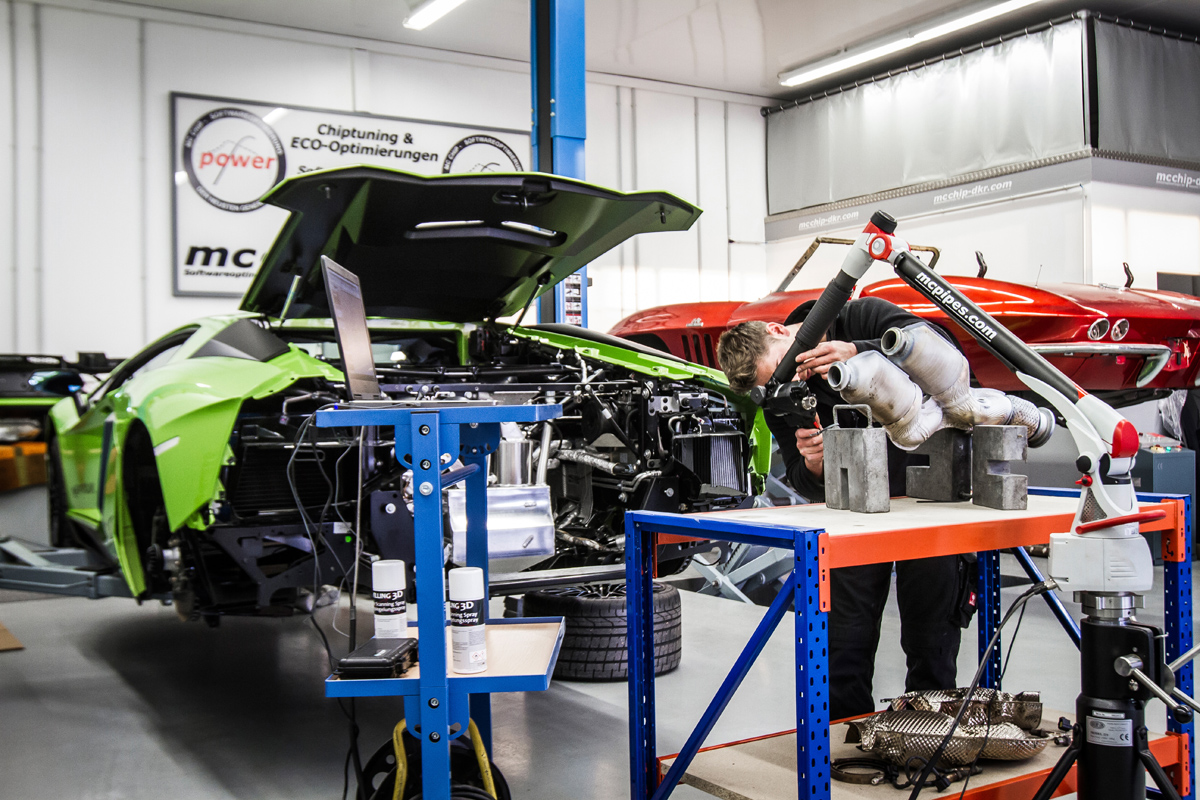 The team at McChip-DKR developed a new software upgrade program that alters a number of parameters to produce more power. The software also takes advantage of the newly-installed catalytic converter replacement pipes named “mcpipes” that reduce backpressure and let the V-12 breathe more efficiently.