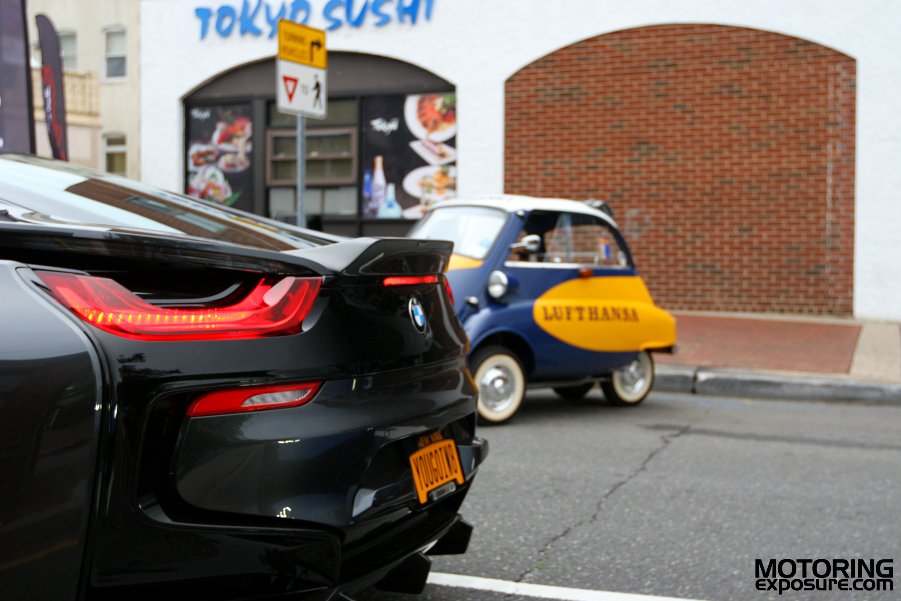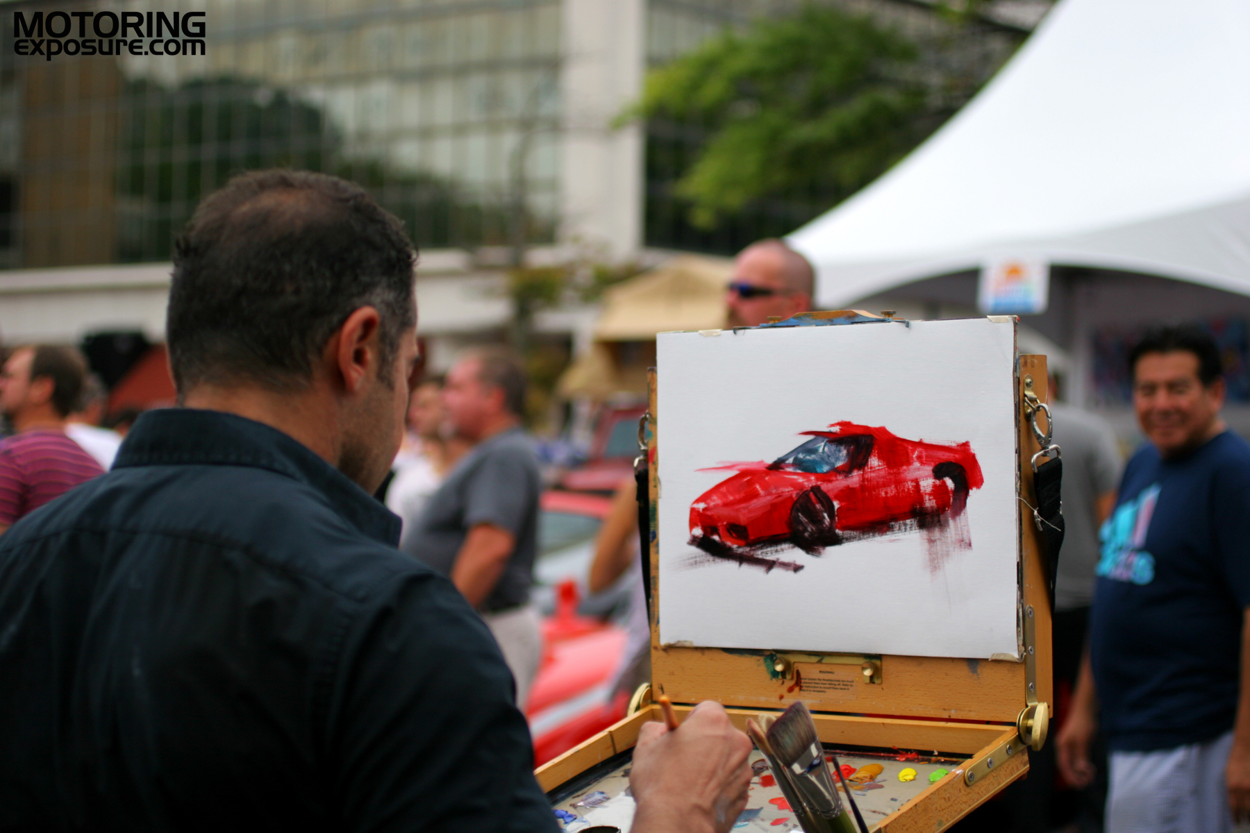 Although the forecast called for rain, the sun was out for the vast array of Ferraris, Lamborghini’s, Porsches, McLarens, BMWs, and everything in between. Ford GTs let their supercharged V-8s whined while a Ferrari Enzo slowly rolled in, stealing the show like only an icon of its status could. Local artist, Dean Adams, was on hand to perform a live painting of the legend throughout the event. Even the new turbocharged Ferrari 488 GTB and McLaren 675LT came to strut their stuff. Although the new-age horsepower generated quite a bit of attention, old-school classics such as the BMW Isetta provided a fun look back into the quirky history of motoring.