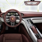 The interior sticks to Porsche’s overall principal of “as little as possible but as much as necessary.” Facing the driver is a new TFT color display that shows both camera views in the side mirror system, and other relevant information that the driver can cycle through. The cockpit features a high-rising center console that utilizes new touch technology that can be easily operated by the driver. Three “smart keys” allow for different driving modes that can alter the performance and fun of driving the Panamera Sport Turismo. New communication technology is also incorporated into the Concept, the basis of which is a smart phone app. The app can have pre-programmed specifications for the interior such as air temperature, seat position, etc. for the driver. The smart phone app also can show the charge rate, time left, and preset timing.