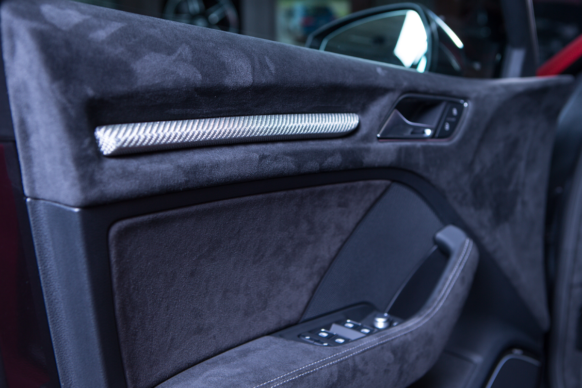 Inside, the ABT RS3 450 Individual features a full black alcantara interior covering everything from the doors to the dashboard and footwells. New carbon-look components and silver stitching add some contrast and a high-end, custom-tailored feel.