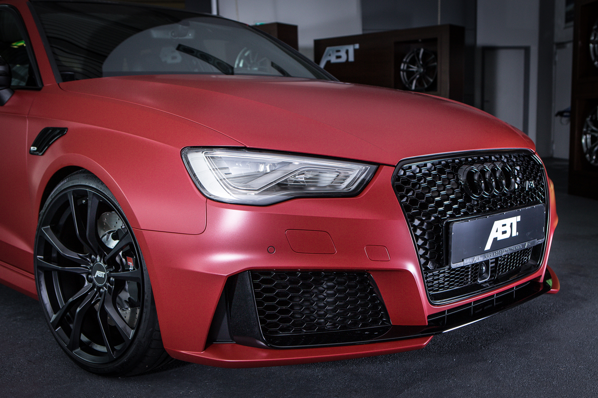Visually, the ABT RS3 450 Individual wears a slick matte red body with a special pearlescent finish while the rear features a contrasting black color. The Audi RS3 already wears a great deal of aerodynamic body work in stock form, so ABT Sportsline added a new set of fender vents to keep things fresh.