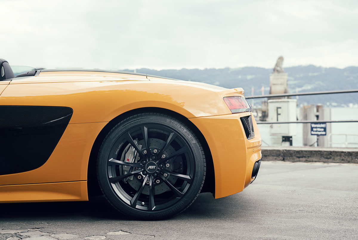 Under the more hardcore body, ABT Sportsline has new wheel and suspension options for Audi R8 owners. Lightweight “Black Magic” finished 19-inch forged ABT ER-F wheels or ABT GR wheels in cast or forged constructions are available. Drivers that want a more precise dynamic can outfit their Audi R8 with ABT sport stabilizer bars along with ABT coilover suspension springs.