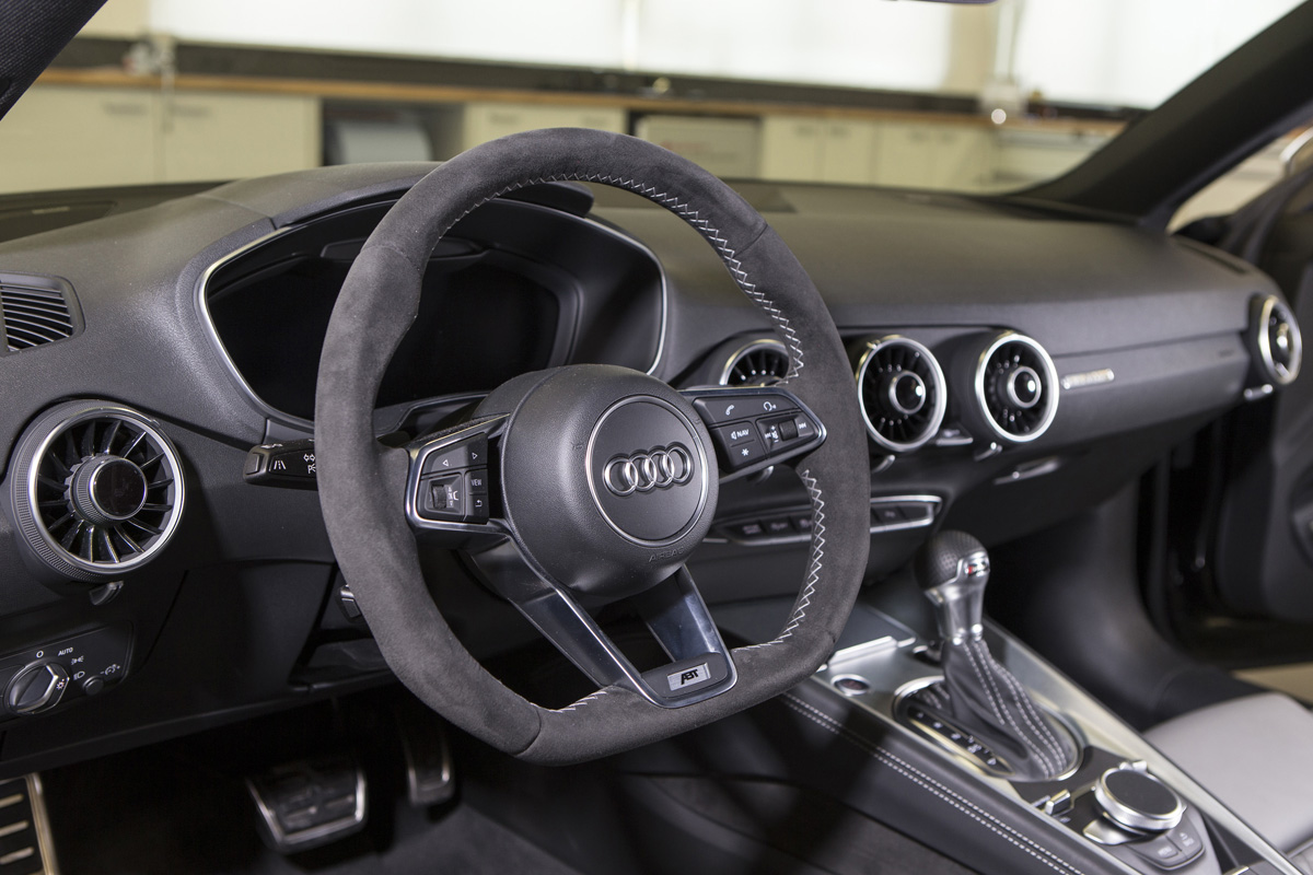 The interior of the ABT Sportsline Audi TT benefits from a few touches that add to the overall sportier character of the car. ABT logos adorn both of the sport seats while the steering wheel, console, seats, and other parts wear Alcantara. A new set of floor mats complete the package.