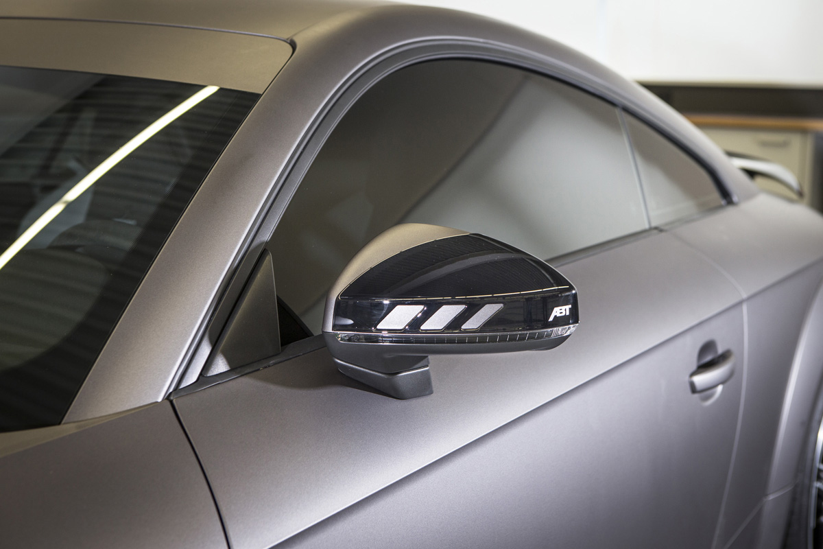 For the past two generations, the Audi TT has had a more rounded, modern design. The third-generation has an edgier shape to it that ABT Sportsline took advantage of with their new body kit. The front fascia is more aggressive thanks to an ABT front skirt add-on and front spoiler lip. A new set of side skirts and mirror caps lend to a more athletic character while the rear sports a large ABT wing and skirt insert with offset design to accommodate the exhaust tips.