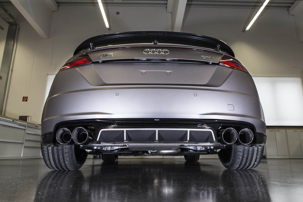 -ABT muffler system with black end pipes and laser-etched ABT Logos
