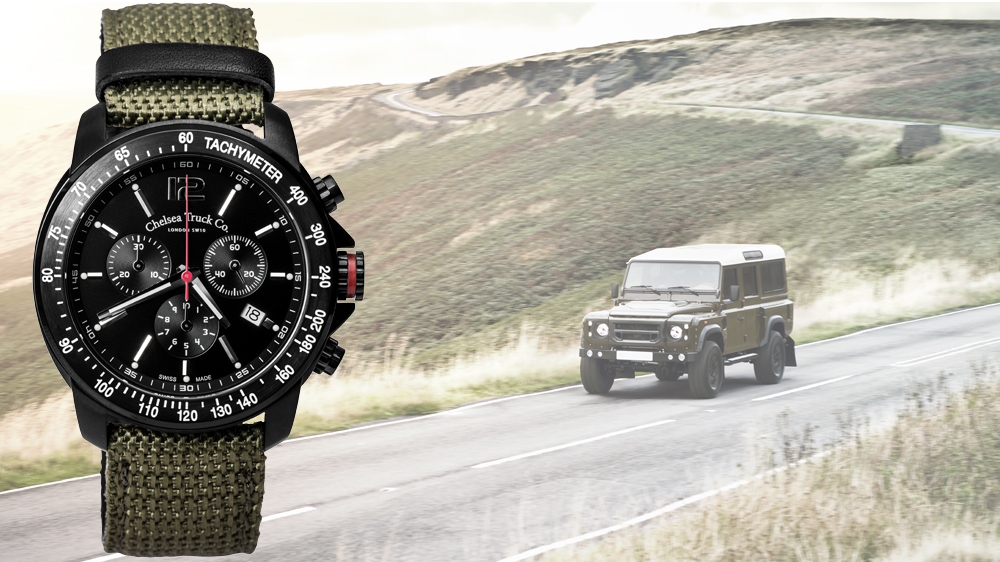 Customers can also purchase the new Chelsea Truck Company watch by A Kahn Design as the perfect accessory to their high-end, rugged SUV. The Swiss-made timepiece features a durable black PVD coating and stainless steel case that measures 42 mm with mineral glass. The chronograph with black dial and white indicators with an olive NATO strap is available for £299.00 + VAT.