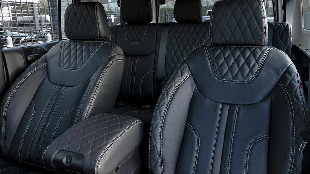 Inside, the front and rear seats, center console, and arm rests are finished in soft quilted and perforated black leather. The Jeep Wrangler Chelsea Truck Company CJ300 LE also boasts stainless steel door entry sills, tough rubber floor mats, and machined and ventilated foot pedals that lend to the all-terrain nature of the SUV while adding a high-end tough. All of that is hidden from sight thanks to privacy-tinted glass.
