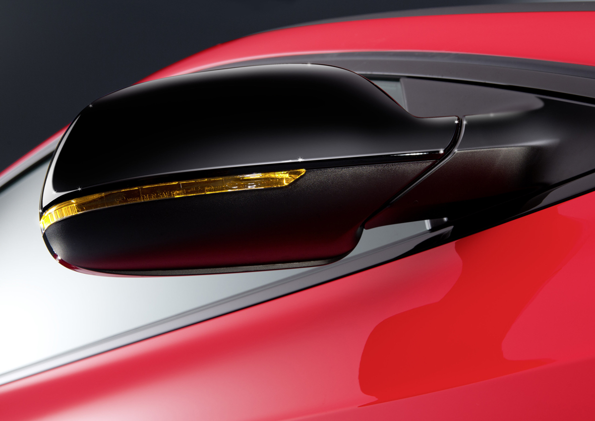 DTM styling cues can be seen all over the two-door coupe wearing a vibrant Misano Red paint. Special ‘DTM’, ‘quattro’, and ‘Audi Sport’ logos and emblems are featured throughout the sports car on the door sills, front lid, and rear window. The Audi A5 DTM also wears contrasting black highlights on the new body work including a black and grey stripe running along the lower doors with matching side skirts.