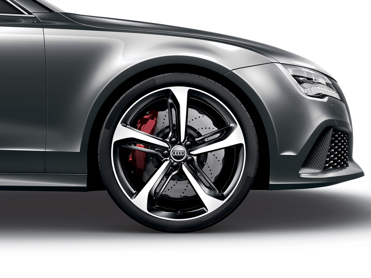 The Audi Exclusive RS 7 Dynamic Edition will be visually different from its standard counterparts, although it will still feature the colors of the German rainbow, with Ibis White, Suzuka Gray metallic, Daytona Gray pearl, Phantom Black pearl being the four available colors. New 21-inch gloss black-finished wheels have Tornado Red brake calipers peering from behind. Carbon fiber also makes an appearance in the form of a new front splitter, diffuser, and engine cover for the mighty 4.0 TFSI.