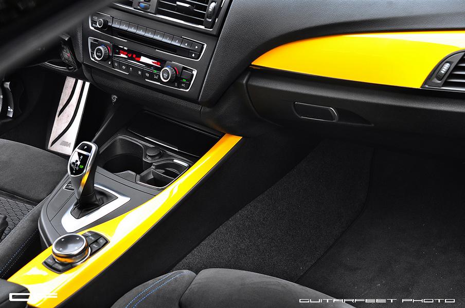 Inside, the lone modification made to the interior is a sharp yellow trim set that matches the brakes and wheel center caps.