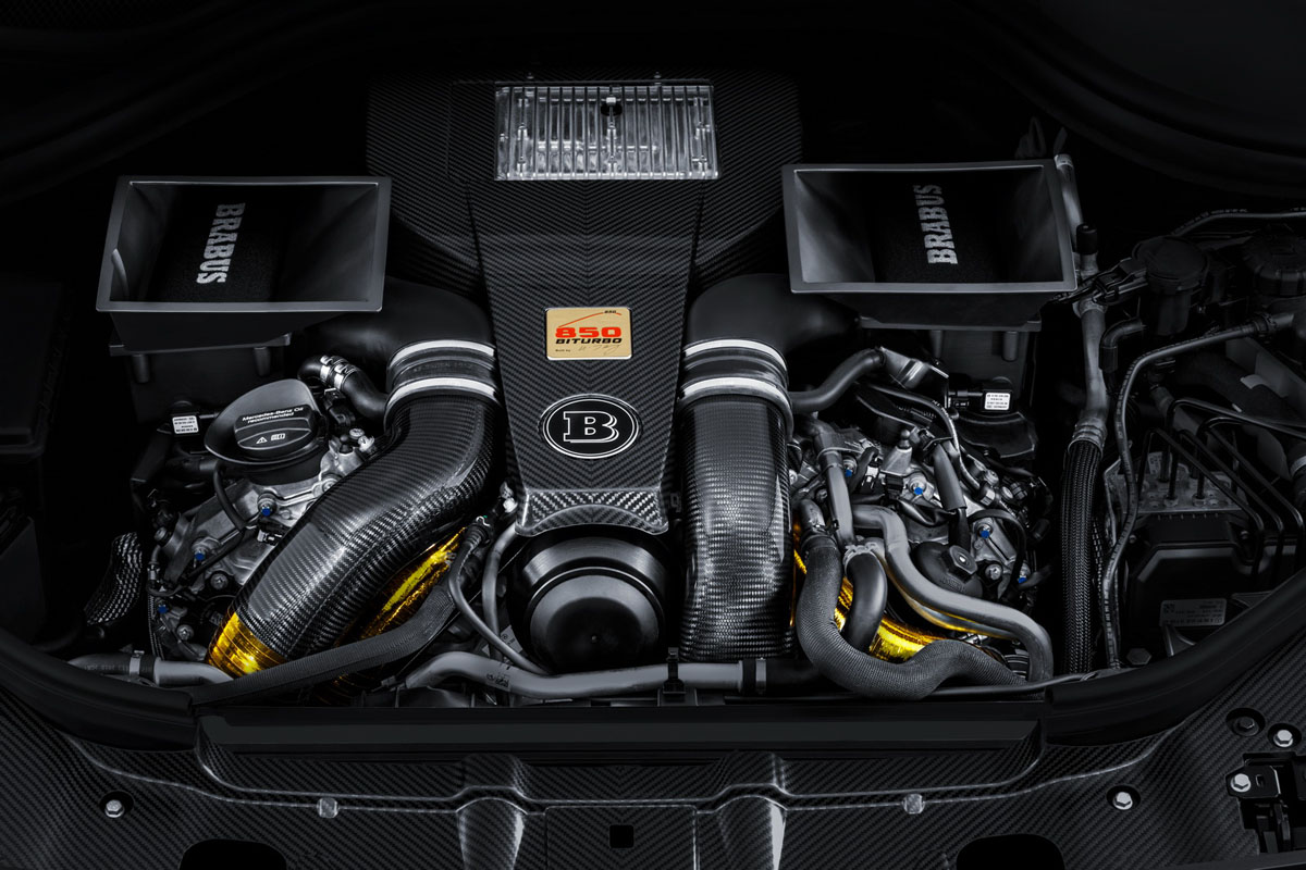 The massive SUV gains a custom-tailored high-performance engine to make it go like hell. Brabus engineers increased the displacement of the twin-turbocharged V-8 engine in the 850 XL to 6.0-liters thanks to an enlarged 99 mm cylinder bore and 96 mm stroke with corresponding forged pistons and balanced billet crankshaft. New optimized heads, a carbon fiber intake module with dual air filter boxes, and carbon fiber air ducts increase airflow even more.