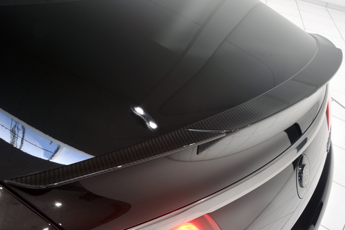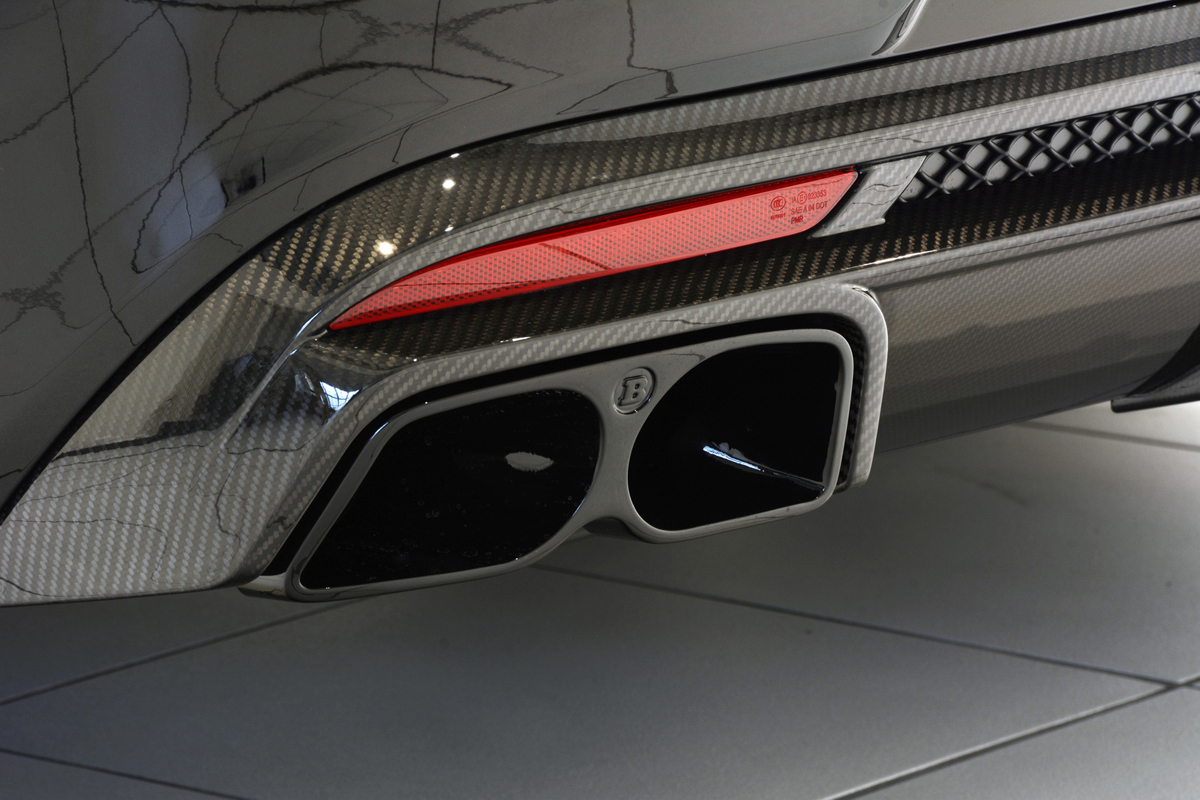 Visually, the Brabus Rocket 900 Coupe keeps the sleek and smooth factory lines but has a touch of intimidation. A full carbon fiber aero kit was designed in a wind tunnel to provide optimum air flow and downforce. Up front, a new front spoiler and newly styled air intakes reduce lift and channel air while a naked carbon diffuser with exhaust cutouts, side air outlets, and trunk spoiler keep things stable at high speeds. Carbon fiber is also used for the side mirror covers for a more uniform, athletic look.