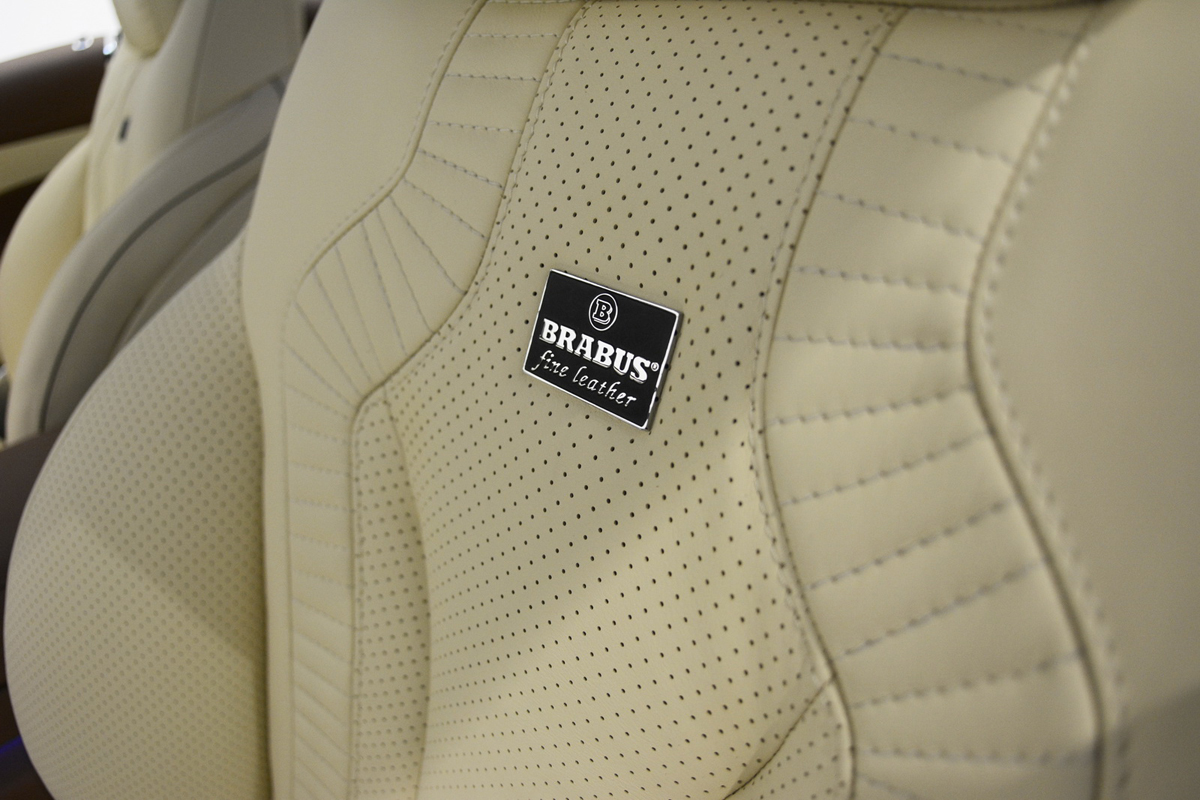 While the story of the Brabus Rocket 900 Coupe lies under the hood, the interior takes that of the Mercedes-AMG S65 AMG a step further. The Geneva show car features a light bright and magnolia Brabus fine leather interior with beige topstitching and “fire” piping across the seats. Custom umbra-colored wood trim with open-pore surfaces creates a lighter, high-end atmosphere. The sporty nature of the super car is evident with the aluminum Brabus race paddle shifters, pedals, and door pins. New scuff plates feature an illuminated ‘Brabus 900’ logo that changes color to match the ambient lighting.