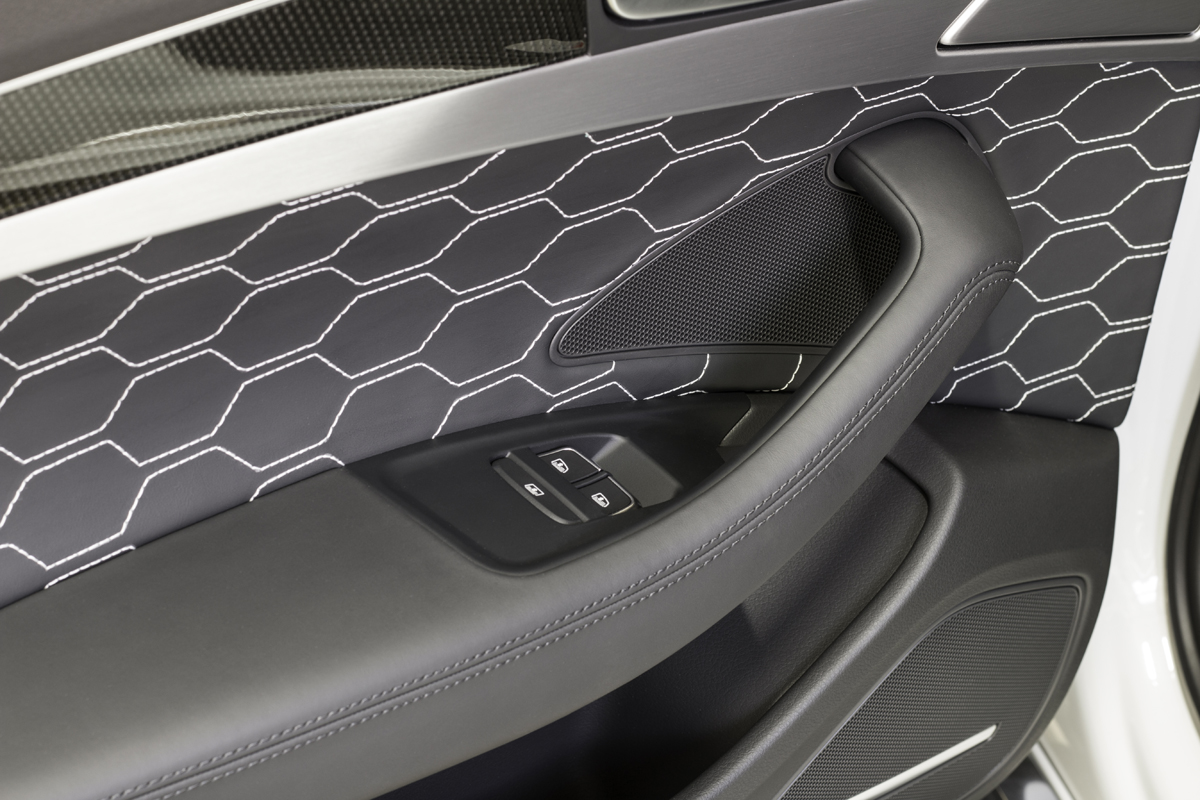Under the hood of the MTM S8 Talladega R sits a carbon cover atop a modified 4.0 TFSI engine. The twin-turbocharged 4.0-liter V-8 was outfitted with a new turbocharger and downpipe setup that runs into a new, high-performance stainless steel system for improved backpressure. An ECU software tune pushes it all to an incredible 802 horsepower at 6,000 RPM and 697 lb-ft. of torque from 2,250 and 5,500 RPM.