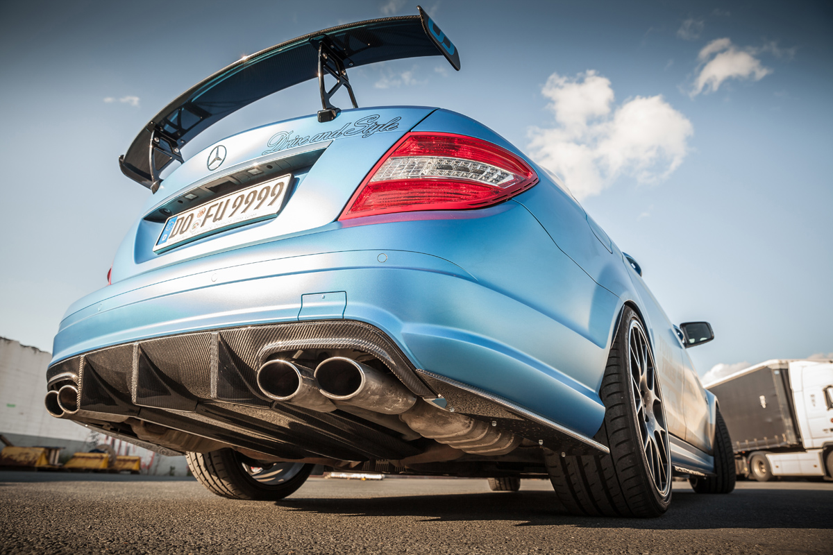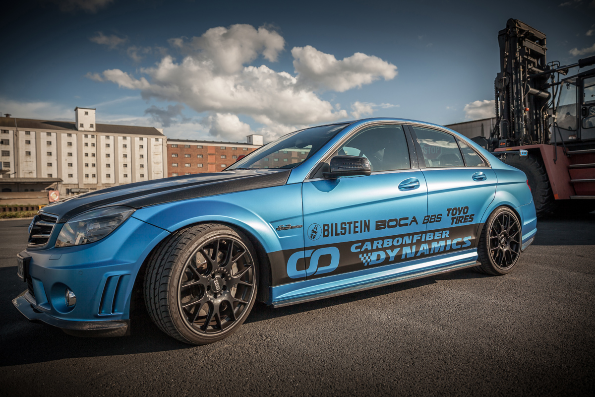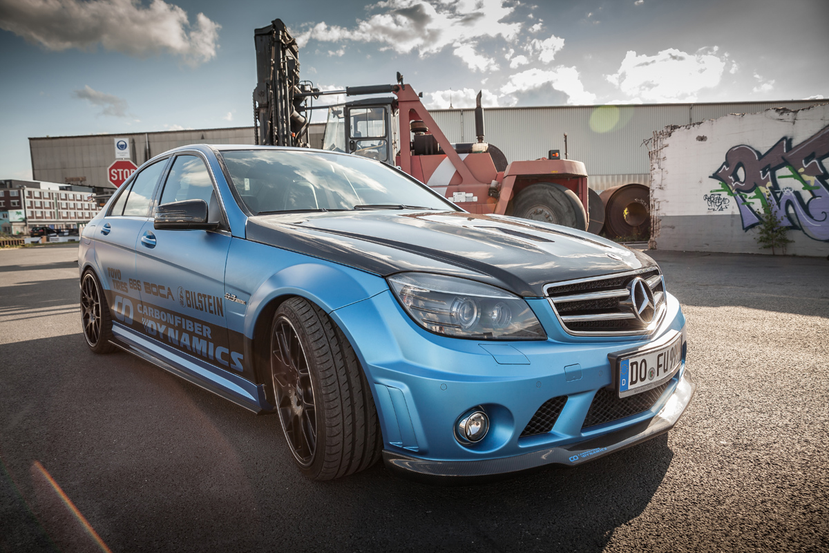 Carbonfiber Dynamics designed a full carbon fiber aerodynamic and styling kit for the C63 AMG, much of which was inspired by the hardcore Black Series variant. The V-8 sports car was given a new front lip, side mirror caps, side sills, diffuser, and rear apron and wings. The hood was also replaced with a carbon-Kevlar unit modelled after the Black Series that sheds 15.4 lbs.