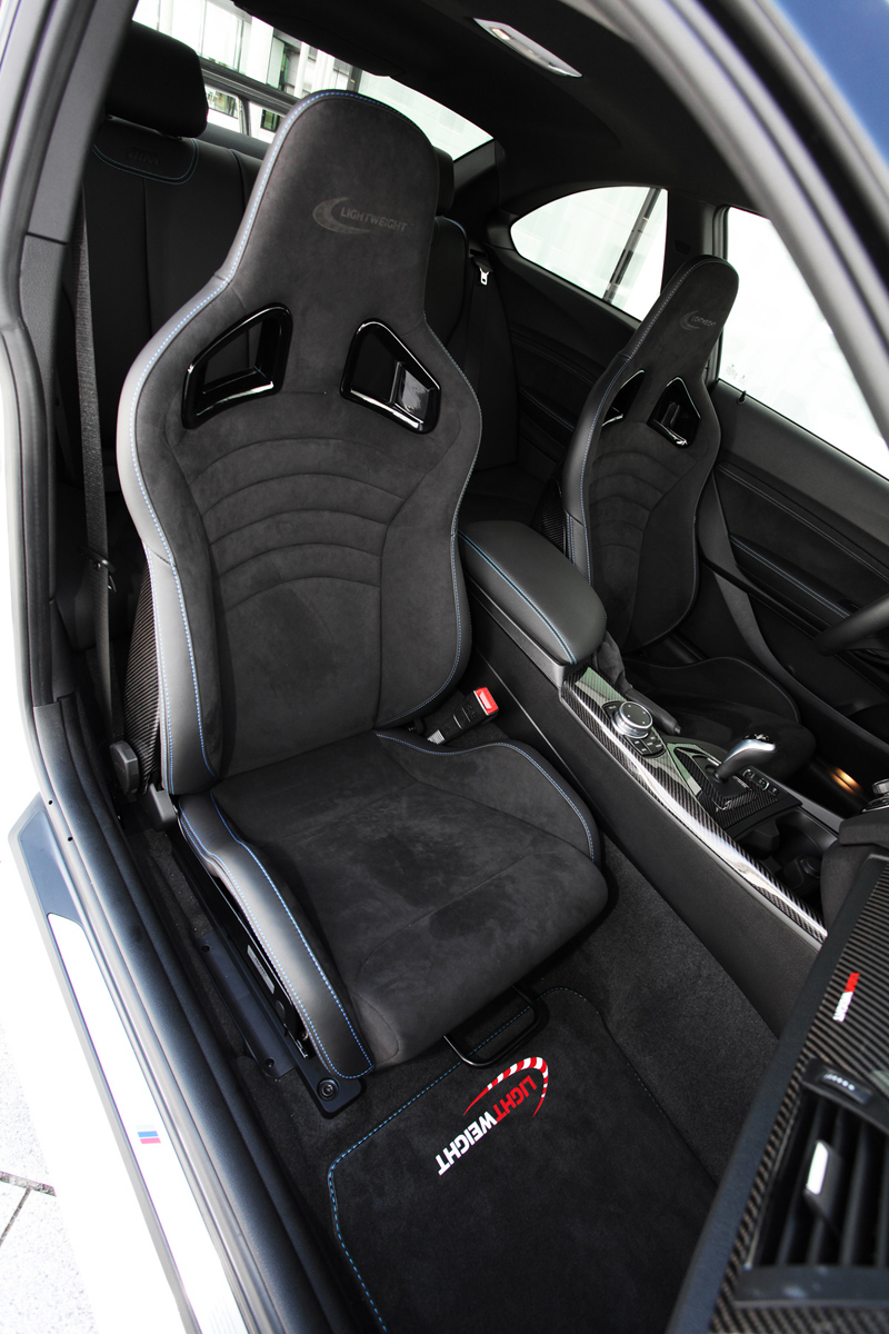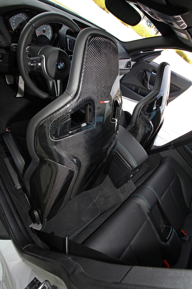 The BMW M-DNA already provides the perfect starting point for making a lightweight, track-focused performance car, starting with that lies beneath the hood. The 3.0-liter TwinPower turbocharged inline-six gains a new carbon fiber airbox as well as some software tuning for the ECU. A set of titanium tailpipes with valve control system drops a few pounds while a 300-cell downpipe cuts backpressure. That’s good for a 444 horsepower, 509 lb-ft. of torque output and a 185 mph top speed.
