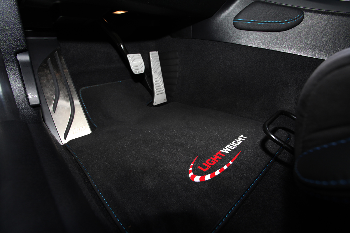 Even the interior of the Lightweight Performance LW M2 has the gorgeous woven material strewn about. Carbon performance seats wear grippy alcantara while LW floor mats and an aluminum pedal set decorates beneath the beltline. Many interior panels were replaced with carbon fiber to drive home the dedication to lightweight performance. A new display system was also installed to show off additional information.