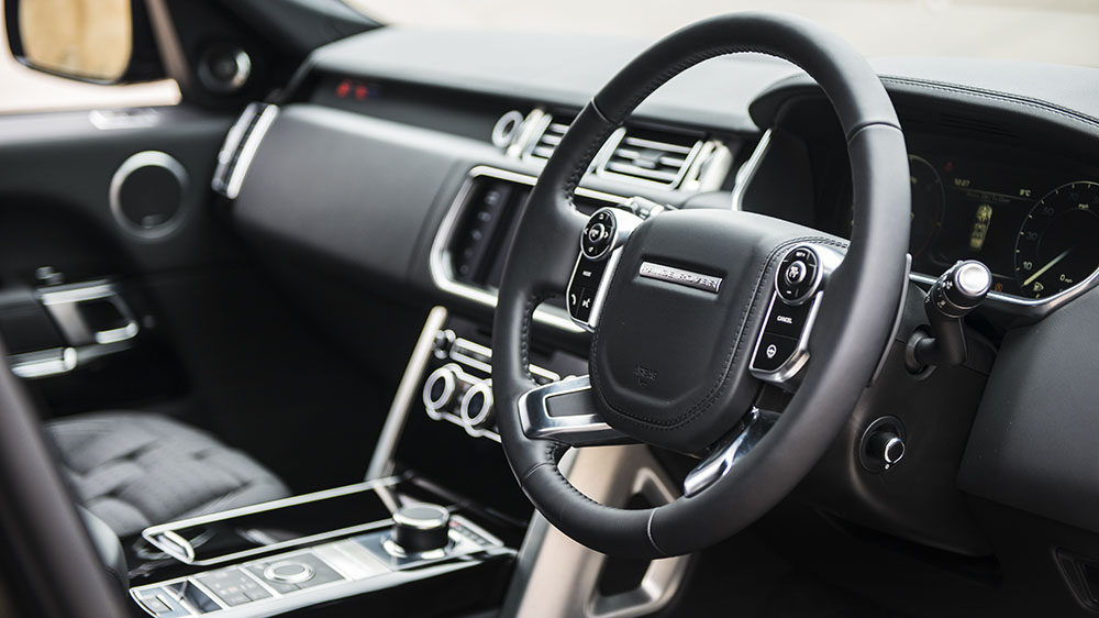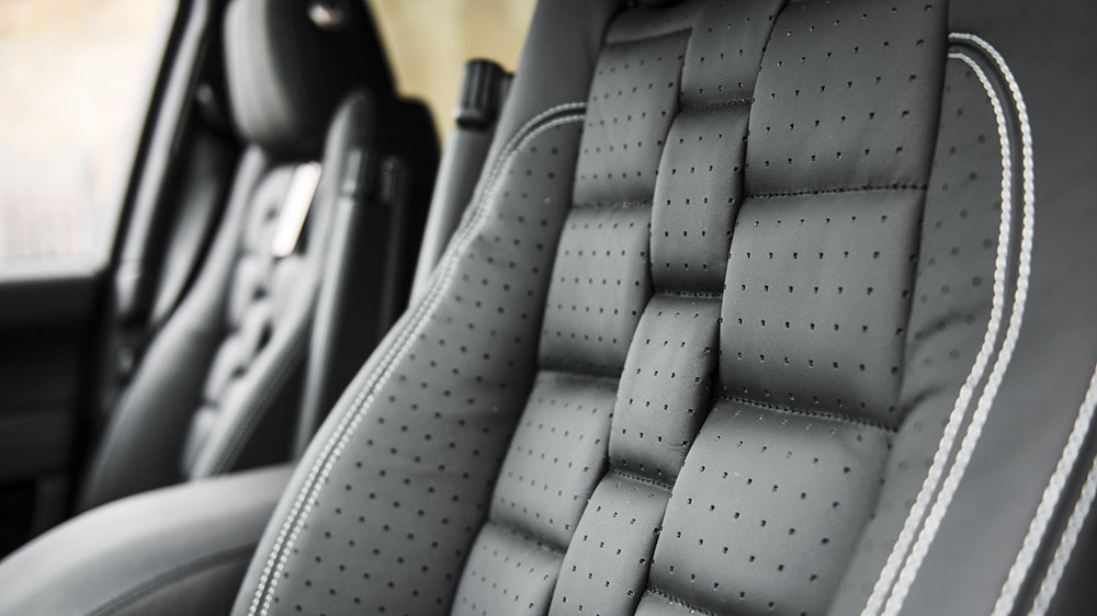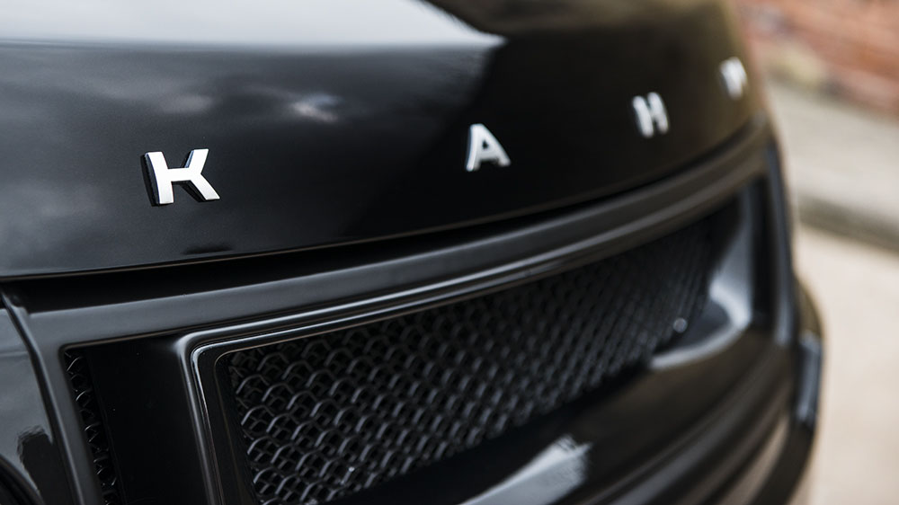 The Santorini Black Project Kahn Range Rover Huntsman Colors Edition features a new pair of 600LE front and rear bumpers in carbon composite that lend a smooth, wide look. Up front, a new double-vented floating grille with 3-D mesh matches the mesh design of the new bumper for a commanding presence. At the rear, a new stainless steel quad cross-hair exhaust system proudly sits and provides a more muscular aesthetic. To finish off the body work, new Kahn branding was installed on the rear and fenders without taking away from the clean look.