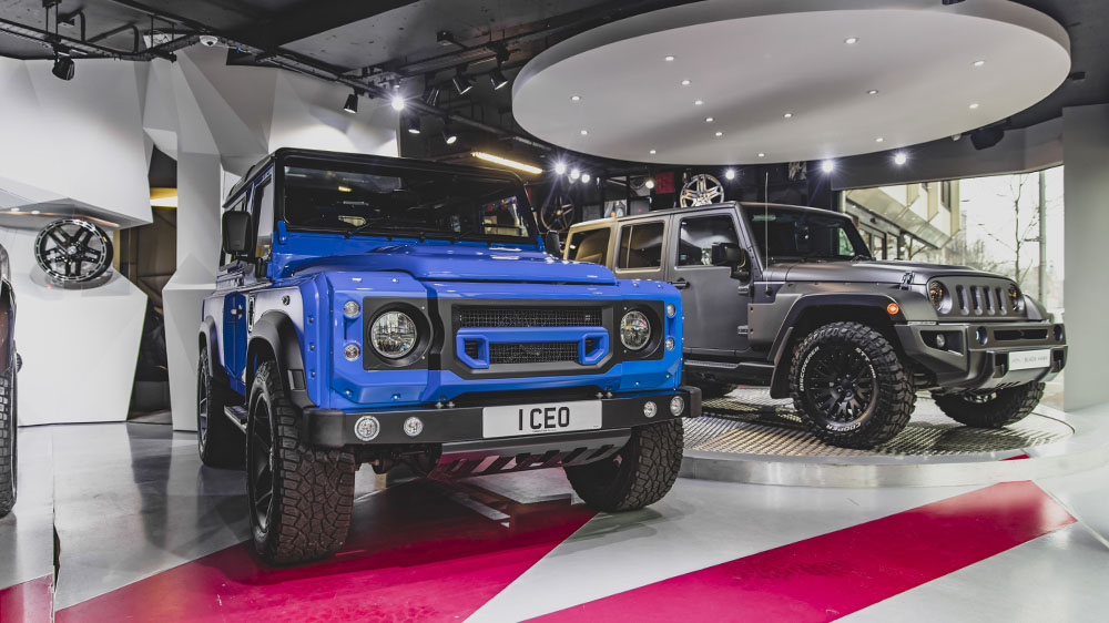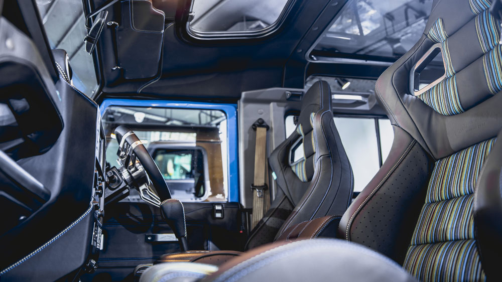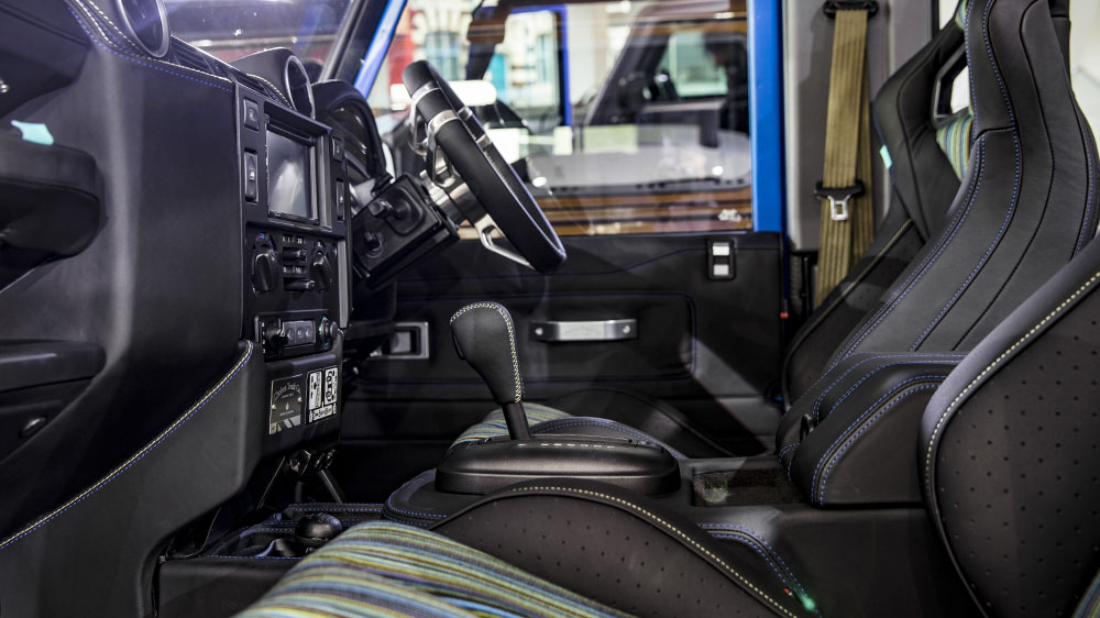 The featured French Racing Blue Chelsea Truck Company Land Rover Defender 90 “The End” Edition shown at the Geneva Motor Show is available as one of the 25 units produced for £90,000 + VAT and comes with a plaque to certify its build number.