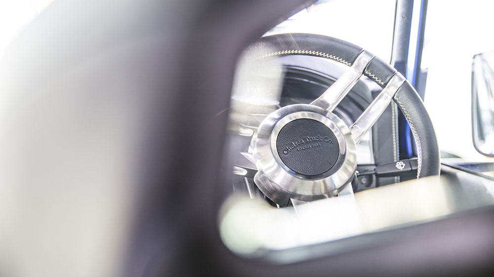 The turbodiesel engine hiding under the hood drives the four new Volcanic Black-finished Mondial alloy wheels thanks to a new Chelsea Truck Company four-speed automatic gearbox conversion.