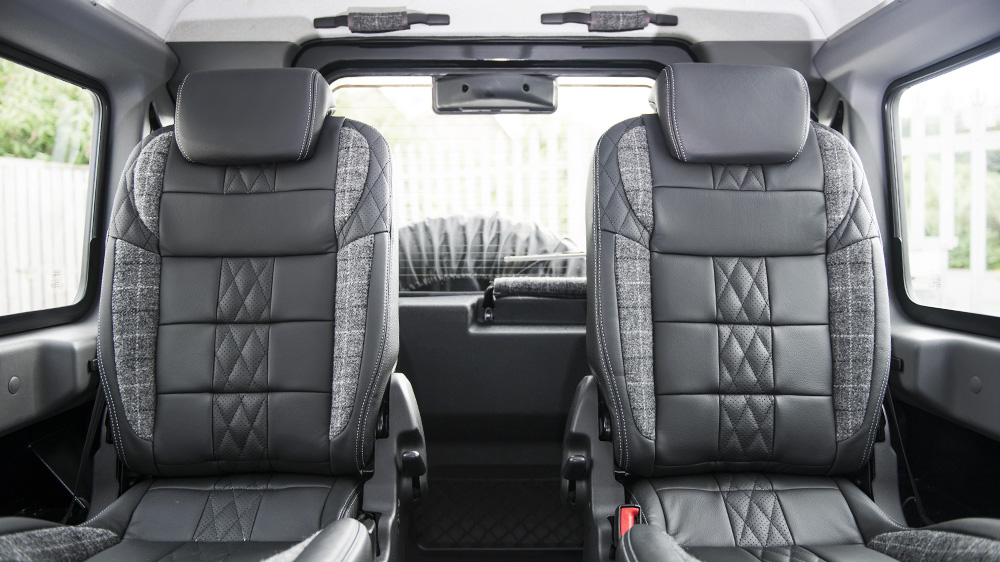 -Rear Seats in Quilted & Perforated Red Leather with Harris Tweed Inserts