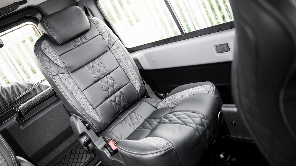 This featured Land Rover Defender 2.2 TDCI XS 90 ‘The End Edition’ wears a Santorini Black paint a powerful upgrade package. Both the front and rear fenders have been widened and wear rugged exposed bolt apertures. Up front, a more imposing bumper sits prominently and features an integrated sump guard and lighting while an X-Lander front grille and mesh hood vents are positioned above. Along with the Kahn enamel shields and logos, a Chelsea Truck Company spare wheel cover flaunts its roots.