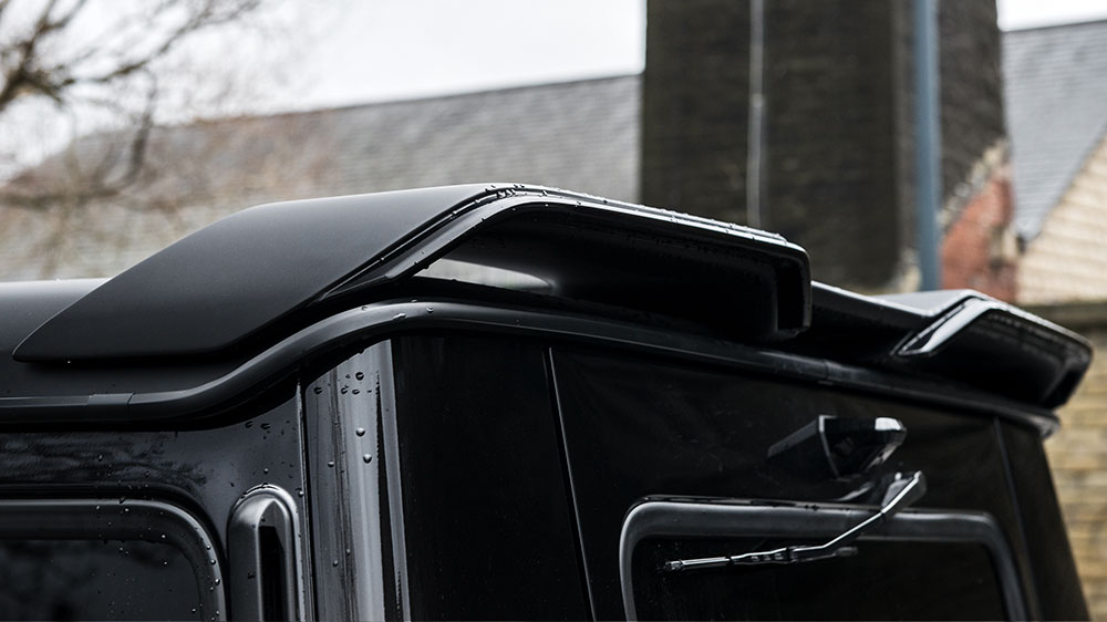 The transformation of the boxy, high-performance SUV starts with a new pair of bumpers at the front and rear with a purposeful look. These flow seamlessly into the extended front and rear fenders with their utilitarian exposed bolt apertures and vents. A new front grille with LED daytime running lights adds to the wide look with its single horizontal line. The Chelsea Truck Company also gave the powerful off-roader a new rear roof spoiler, a Sportive Luxury roof shield with LED Lights up front, and a new exhaust system.