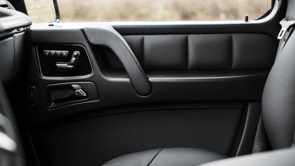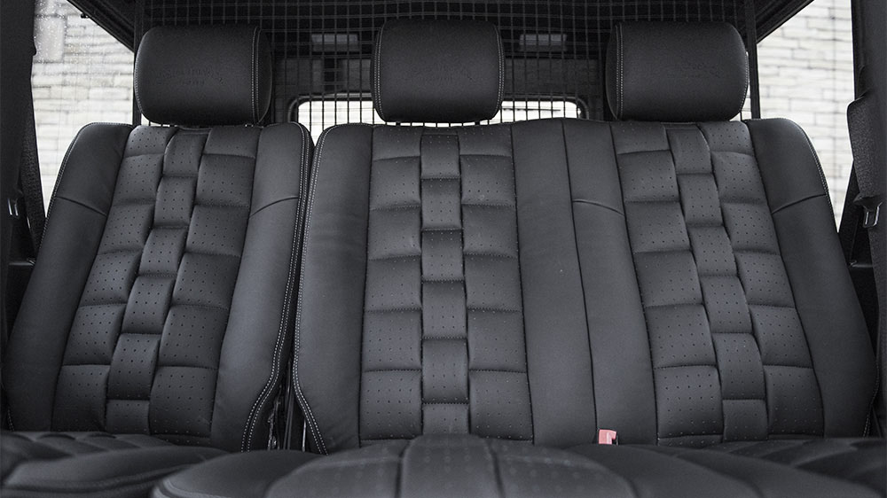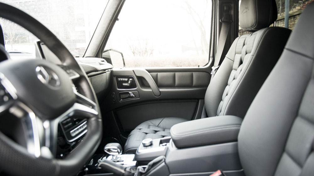Inside, it’s a different world for passengers in the Chelsea Truck Company Mercedes-Benz G63 AMG Hammer Edition. Here, a specially-designed 3-D module leather interior adorns the front and rear seats complemented by hand-stitched details, a new roof liner, and sun visors for a more luxurious ride quality and atmosphere.