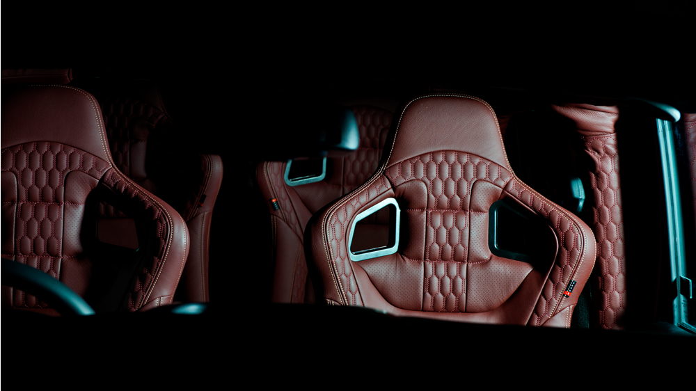 Inside the Chelsea Truck Company Jeep Wrangler Black Hawk is a high-end, custom-tailored interior designed to suit any kind of customer’s exotic wishes. Both the front and rear seats wear a soft quilted and perforated honeycomb leather with contrasting gold top stitching. The same leather design is also fitted to the center glove box and arm rests, while a new steering wheel gives drivers a better feel.