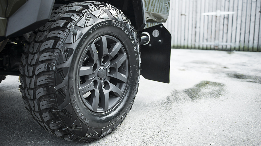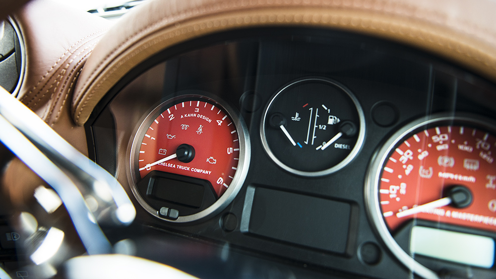 The capable and dynamic off-road character of the Land Rover Defender was also improved with the Chelsea Truck Company conversion. The Defender 2.2 TDCI XS 110 Wide Track was given a new set of 1948 Defend wheels with a satin black finish in an 8.0 x 16 fitment with beefy 265/75/16 tires. Behind the wheels sit liquid red painted brake calipers, a two-inch suspension lift, and upgraded gas shocks and steering dampers. Hard-wearing mud flaps complete the fitment while a welcome ambient illumination package greets driver and passengers. The finishing touch is a new twin-crosshair exhaust system protruding from the rear.