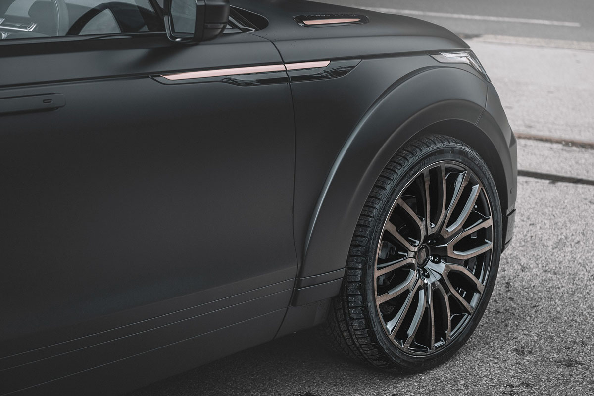 Beneath the widened fenders sits a new set of Kahn 23-inch Pace Car wheels sporting a Dark Bronze tint to match the detailing on the body. A lowered sports suspension ensures a clean and athletic stance that’s ready to drive.