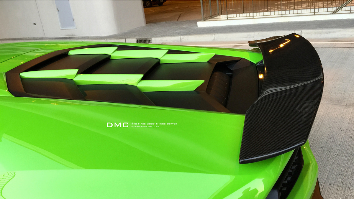 The new DMC Huracán Affari is more dynamic, sharp, and commanding with its new carbon fiber parts protruding from the factory bodywork. A new front fascia with two spoiler lips, widebody extensions, and aero-swords cuts through air and generates downforce for better stability at triple-digit speeds. The menacing, sharp-edged design continues towards the rear with a pair of side skirt diffusers. The rear is where the Huracán really shines thanks to a new bumper diffuser that extends outwards and a rear wing spoiler. The spoiler sits atop of a reengineered decklid negating the need for holes to be drilled during installation. Drivers can adjust the spoiler to three different positions to generate the perfect amount of downforce in a given driving situation. The final touch is a new set of diffusers that sit atop the engine and were designed to look like reptile scales.