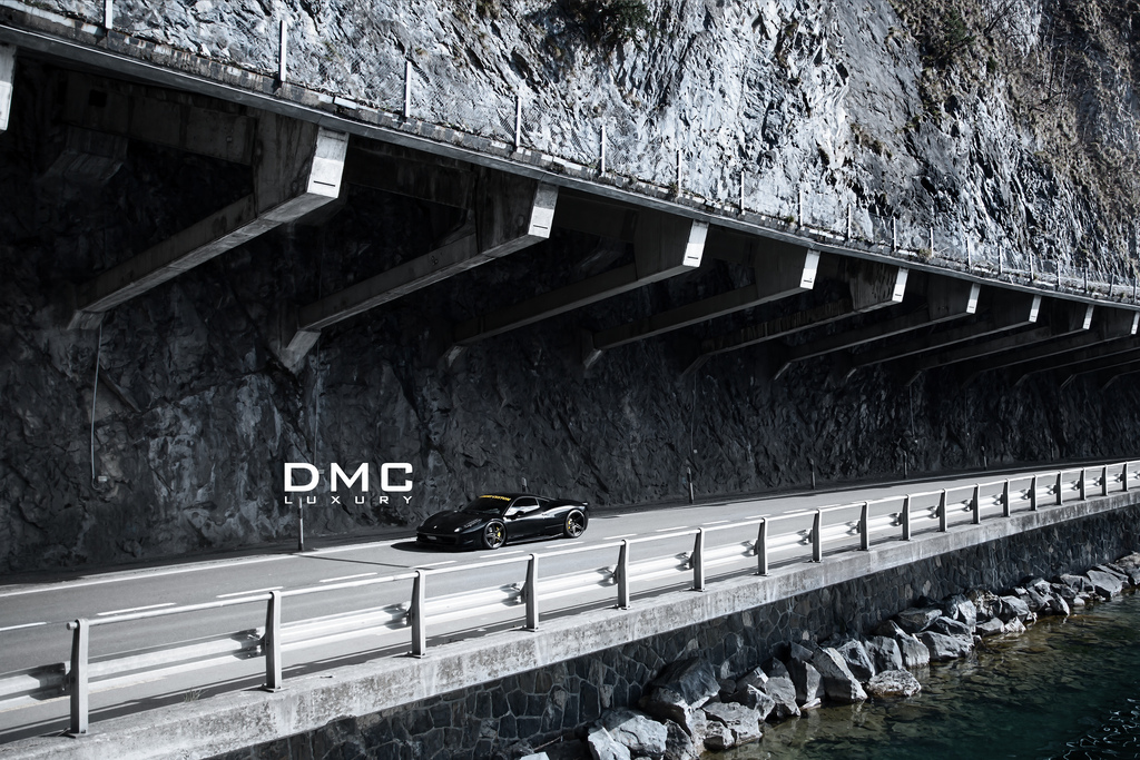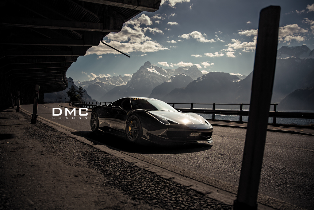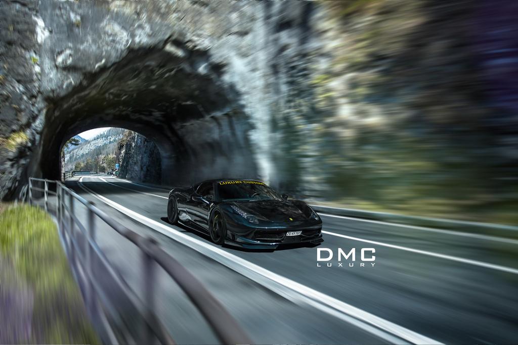 DMC Exotic Car Tuning is making a statement again with its Ferrari 458 Elegante. This time, the upgrade package has been installed by Swiss partner, Luxury Custom, and given the nickname ‘black beast’ due to its sinister dark appearance. To show it off, they took it out into the Swiss Alps to have some fun on the winding mountain roads with its Hamann Motorsport SLR friend.