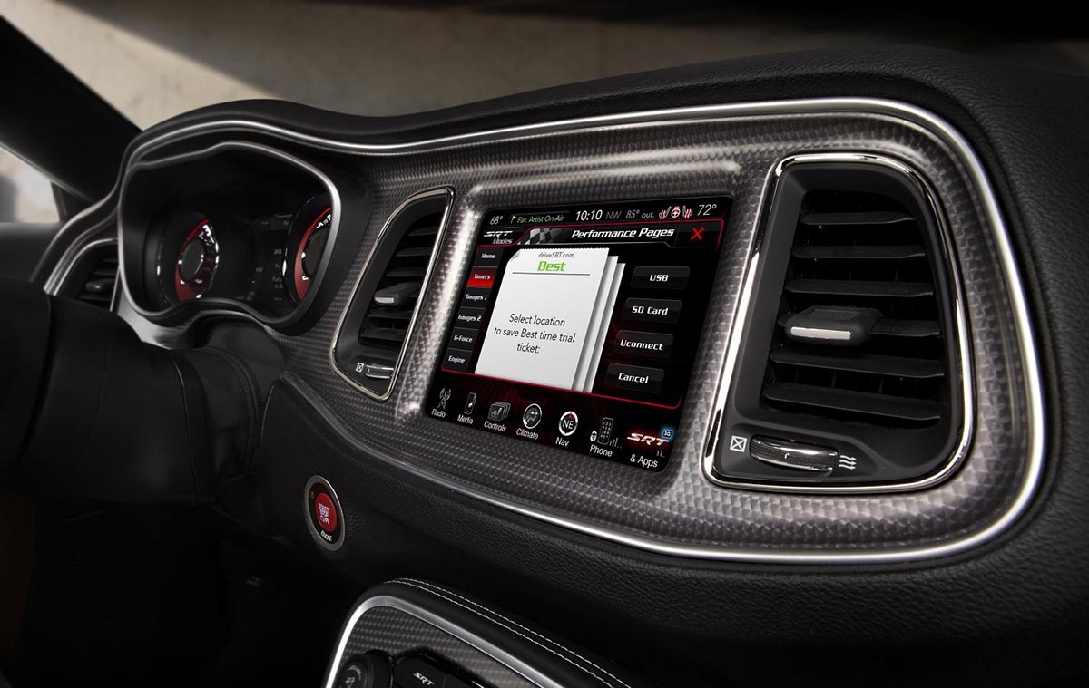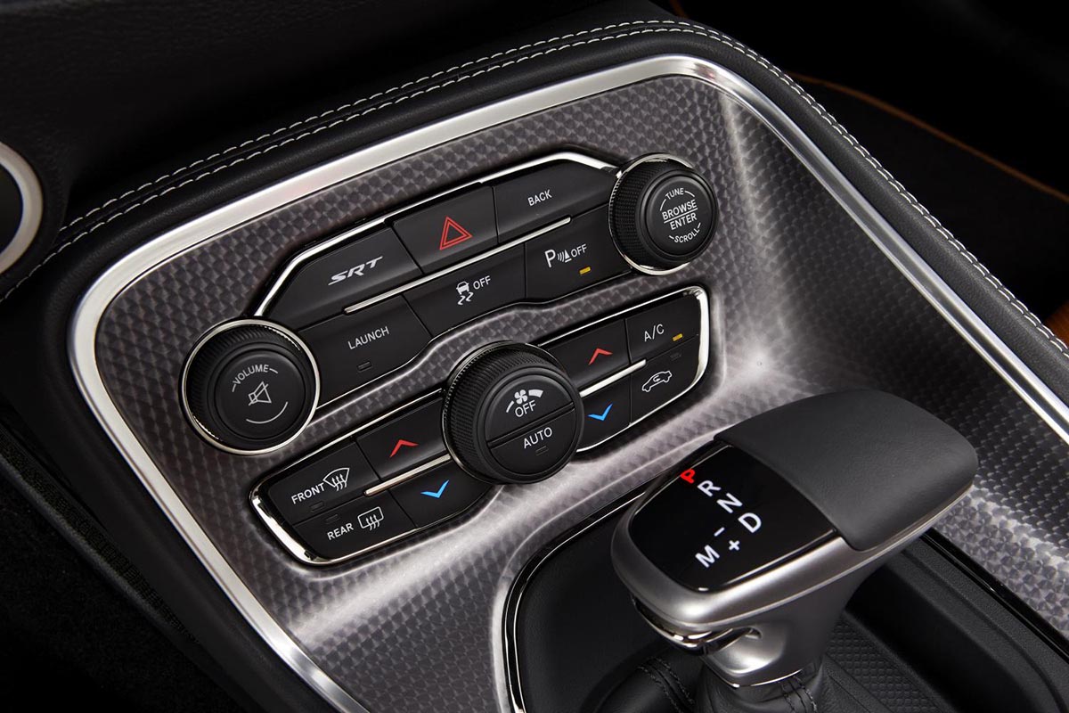 The Challenger SRT Hellcat gets two individual keys: One in black for reduced output and another red one to unleash the full 600-plus-horsepower output. There is even a PIN-activated Valet mode for both variants that, among other things, limits power and access to the first gear.