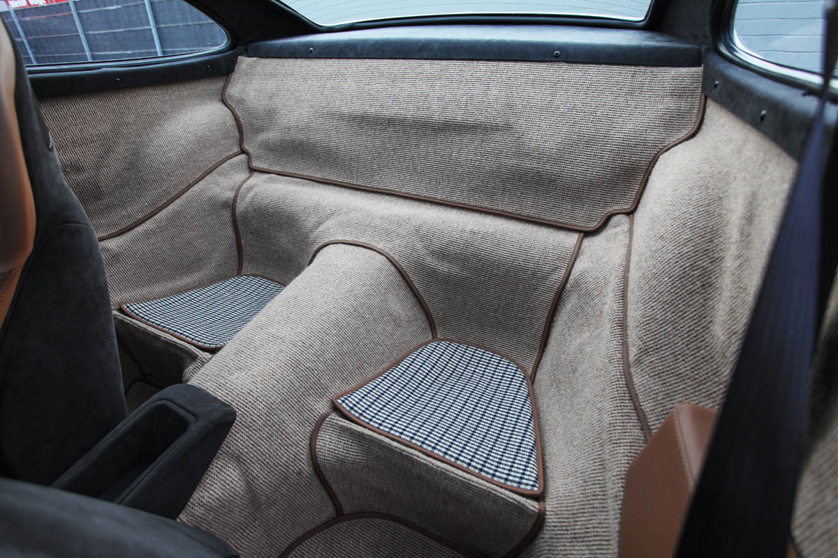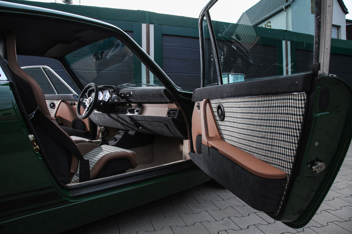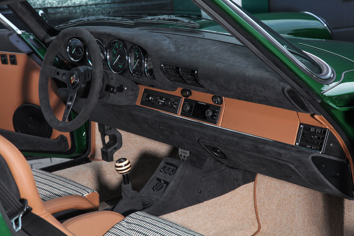 DP Motorsport also dressed the cockpit of the Porsche 911 to the nines with a range of upgrades. New Recaro sports seats hold driver and passenger in place with a special Brown Porsche leather and shepherd’s check pattern. This is matched by a new Beige Bouclé carpet. Soft Alcantara covers the dashboard, center tunnel, and other areas of the cockpit. Drivers benefit from a new Momo Protopio steering wheel covered in Alcantara and multilayer bonded wood gearshift knob. A new Porsche Classic radio with navigation, USB, and Bluetooth brings the sports car into the 21st-century and keeps with the retro design.