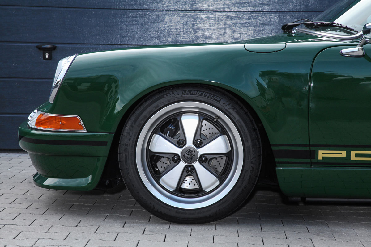 Covered in Irish Green (color code 213), the restored and upgraded Porsche 911 flaunts a new lightweight carbon fiber/Kevlar widebody kit that extends each side by 25 mm compared to the standard Carrera model. Code-named the “964 Classic Carrera Widebody”, the DP Motorsport creation instantly gives the air-cooled sports car a more aggressive and commanding look.