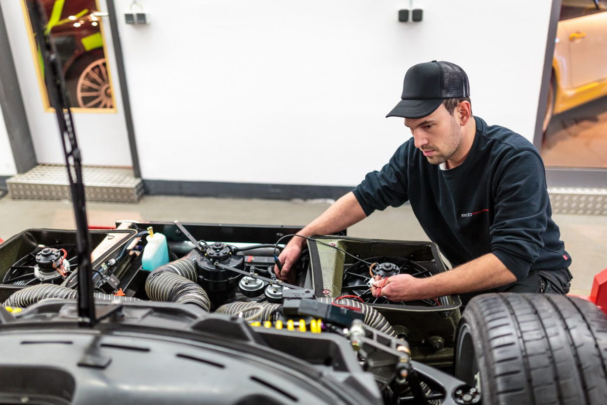 edo competition was also given the green light to install their own radio-controlled exhaust system with adjustable valve flaps for the 6.0-liter V-12 engine. The naturally aspirated motor produces a thrilling 755 horsepower at 8,000 RPM and 546 lb-ft. of torque at 5,500 RPM. Because it tips the scales at just 2,756 lbs. thanks to its carbon fiber monocoque, it can hit 62 mph from rest in approximately 3.0 seconds and 124 mph in only 6.0 seconds. Top speed is a whopping 205 mph.