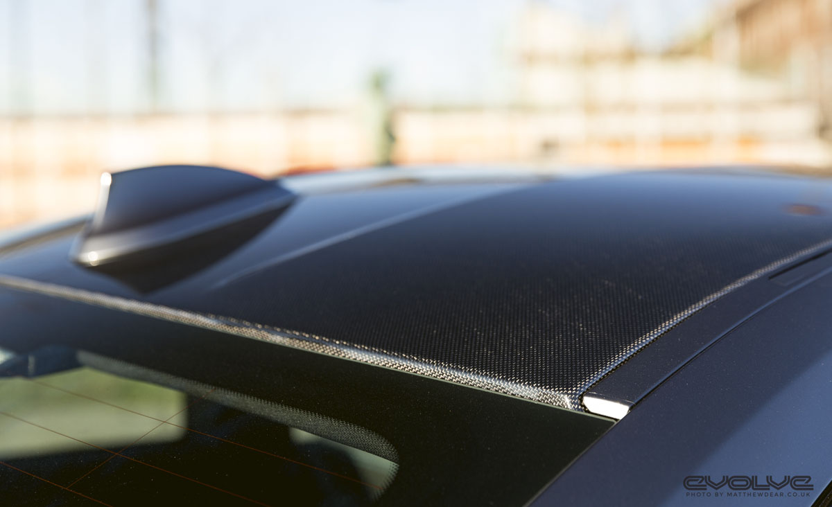 And while spoilers and lips grab the headlines, the new Edison Composites hood and roof fly under-the-radar and increase overall performance. The team at Carbonfiber Dynamics and Evolve Automotive opted for the Edison Composites hood with reinforced Kevlar layer to emphasize the GTS look, improve engine ventilation, and cut 20 lbs. of weight. The new Edison Composites autoclaved carbon fiber roof bears a striking resemblance to the M4 GTS’s unit and cuts 11 lbs. of weight at the highest point, which improves the overall center of gravity.