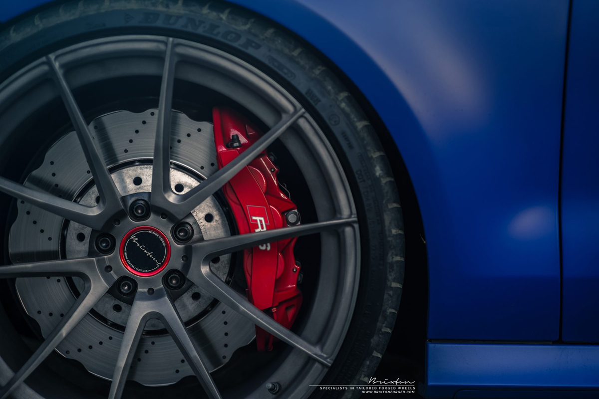 The twin-turbocharged, 4.0-liter TFSI V-8 engine packed beneath the hood creates a whopping 560-horsepower. That’s good enough to send it to 62 mph in less than 4.0 seconds and to a 155 mph (limited) top speed. That’s a lot of force to handle, especially for the wheels, but these Brixton Forged WR3 Ultrasport+ one-piece alloys are more than up to the task.