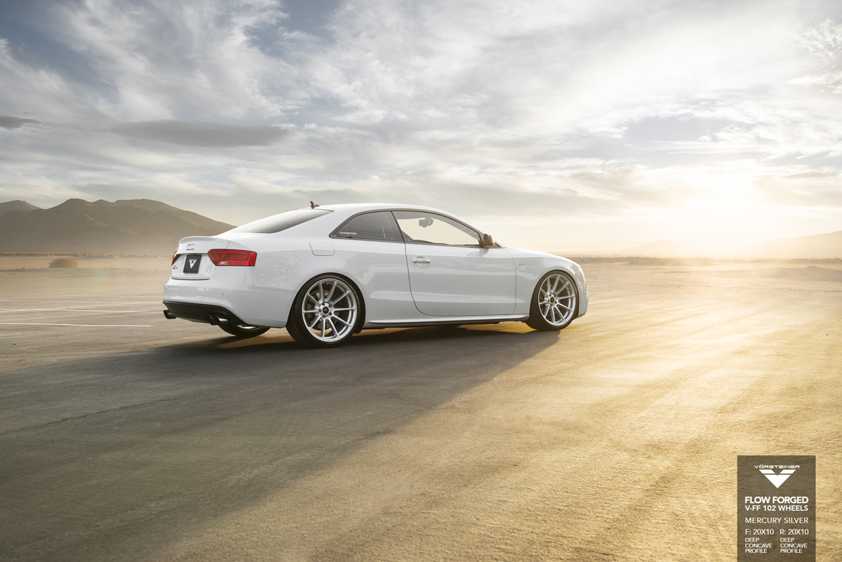 Earlier this month, Vorsteiner showed off their new Flow Forged V-FF 102 wheels on an Audi S4. The ten-spoke wheels are definitely a hit and quickly found their way to the S4’s two-door sibling – the Audi S5.