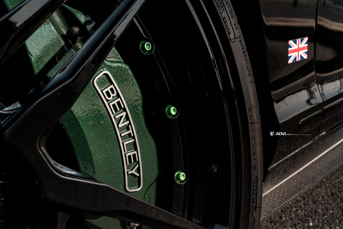 On this Bentley Continental GT3-R, The ADV05R Directional M.V2 CS Series wheels were installed in a 21 x 10.5 size at the front and rear. Each one of the lightweight two-piece forged wheels wears a Gloss Black finish with OEM centercap option. The customer also opted for 50/50 Exposed Titanium Hardware with British Racing Green fasteners to reduce overall weight even more and match the color of the carbon ceramic brake calipers.