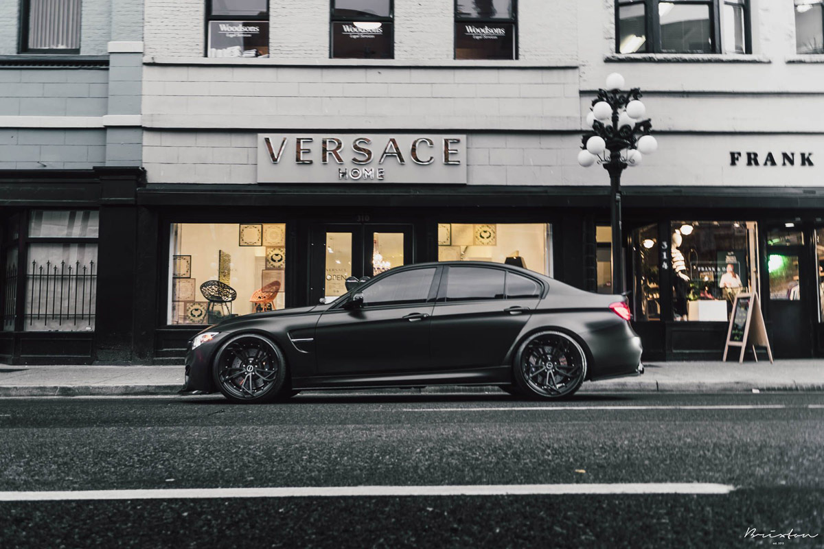 Then there’s the look of the @m3fxx. The entire body is dressed in a smooth Matte Black wrap that emphasizes every curve and line on the sleek body. That, in and of itself, draws attention, but what really breaks necks is the new fitment starring a fresh set of Brixton Forged PF1 Duo Series wheels.