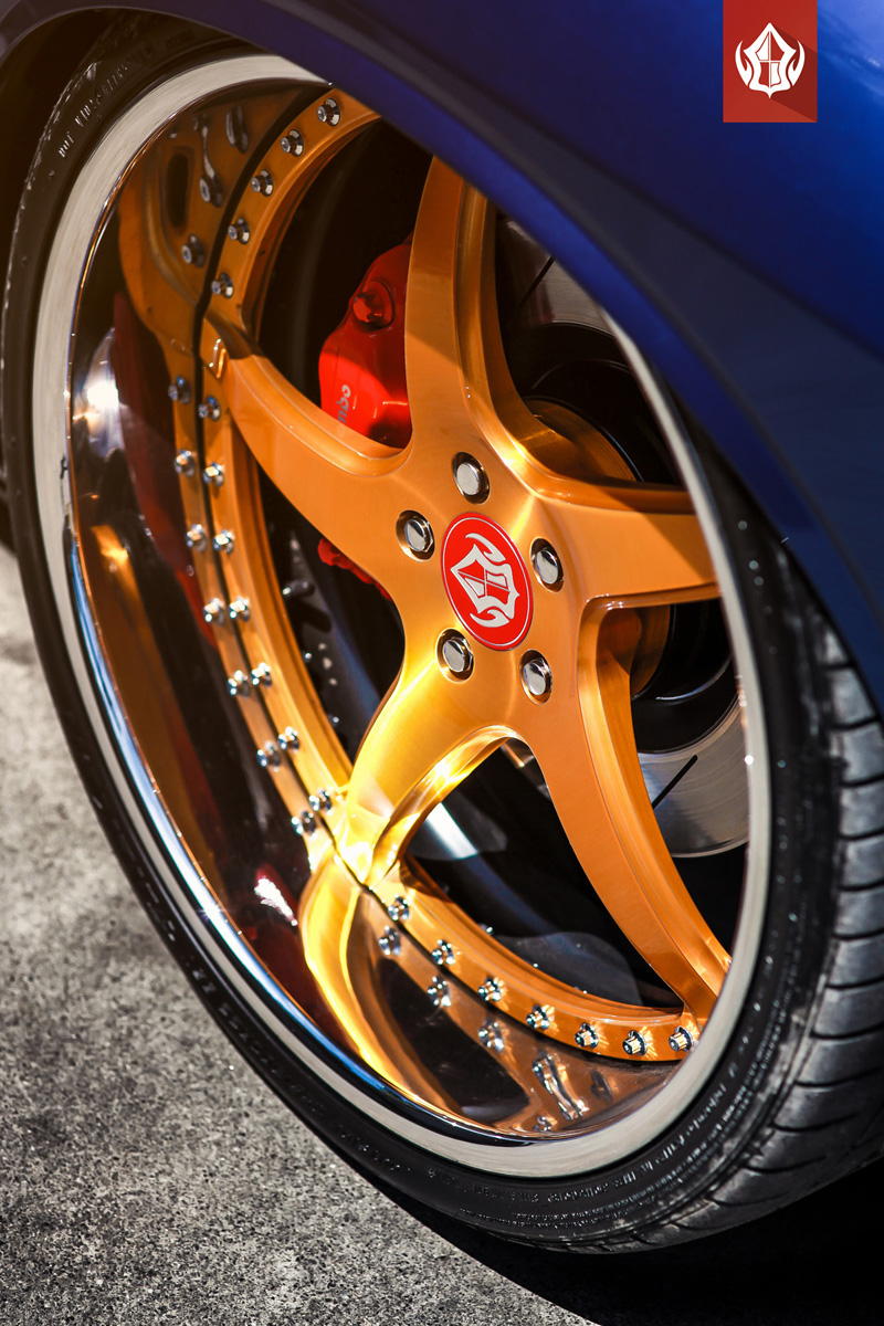 Wheel Finish: Dubai Gold centers, chrome flat lips, chrome hardware, Crimson Red center caps.