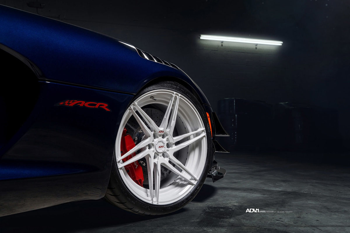 For the American super car, the new ADV06R M.V2 Competition Spec wheels were installed in a powerful 20 x 10.5 front and 20 x 13.0 rear fitment. Each of the two-piece wheels features a clean all-white finish that matches the ACR’s dual white stripes running the length of the car.