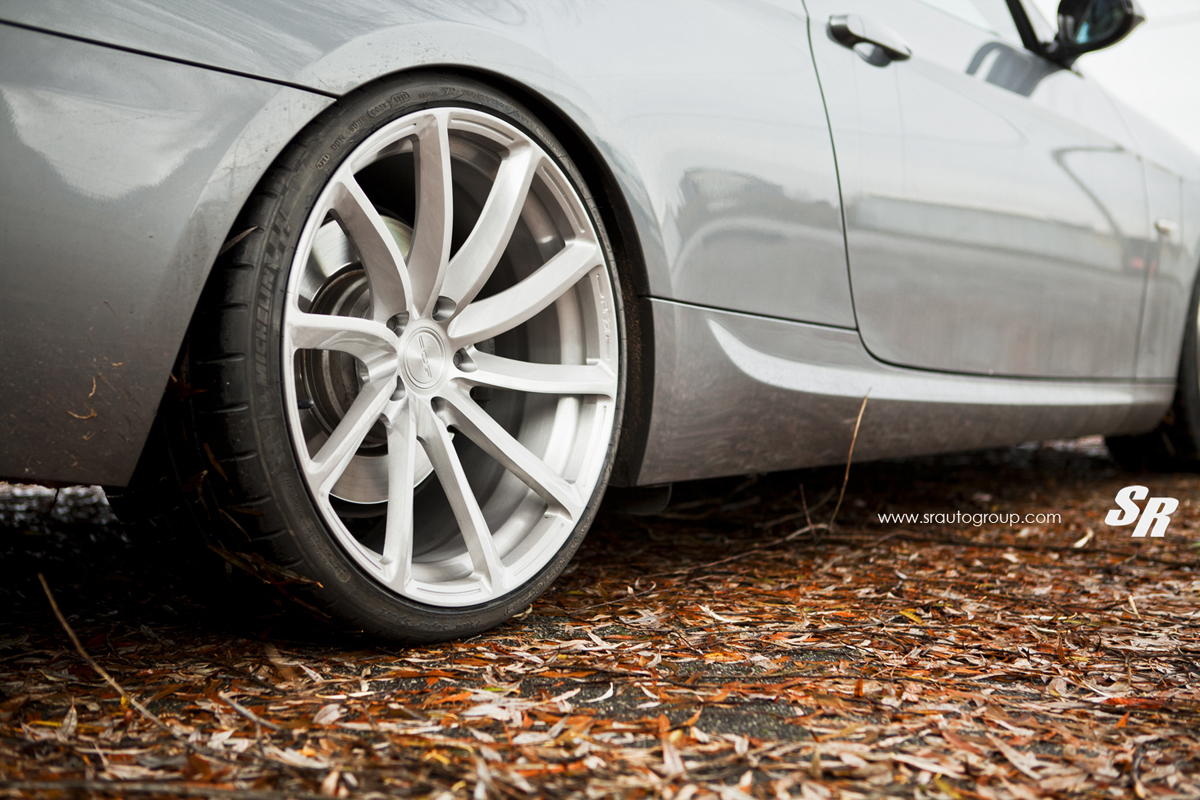 For the smooth, rounded figure of the E92 BMW 335i, SR Auto Group opted for the PUR RS08 forged wheels with their modern twisted spoke design. Each wheel features ten spokes that subtly twist to create the impression of movement and speed, and are made from lightweight forged aerospace-grade 6061-T6 aluminum alloy that keeps rotating mass to a minimum without sacrificing durability.