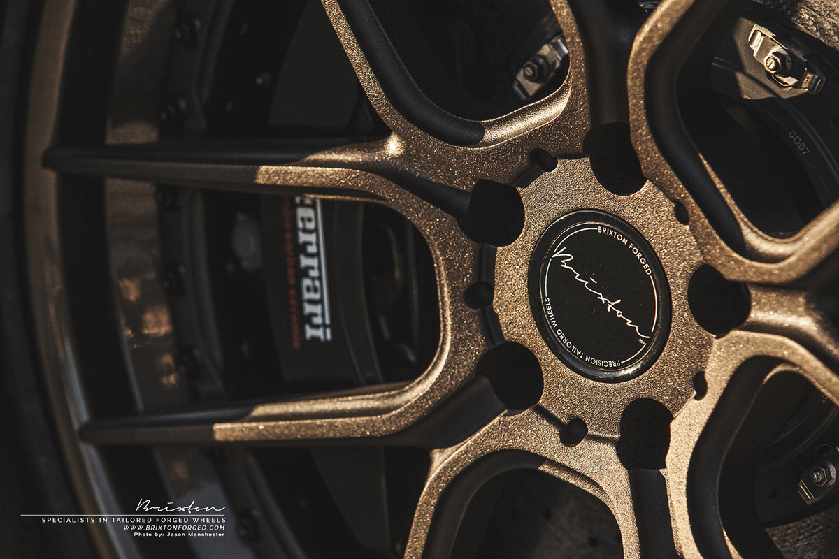 The lightweight 6061-T6 forged aluminum alloy wheels keep weight to a minimum where it matters most, allowing for ultimate performance. In the style department, the Brixton Forged CM5 Targa Series wheels don’t disappoint with their detailed Fine Texture Forged Bronze discs and Gloss Forged Bronze outer lips, adding a unique complementing touch to the exterior of the 458 Italia.