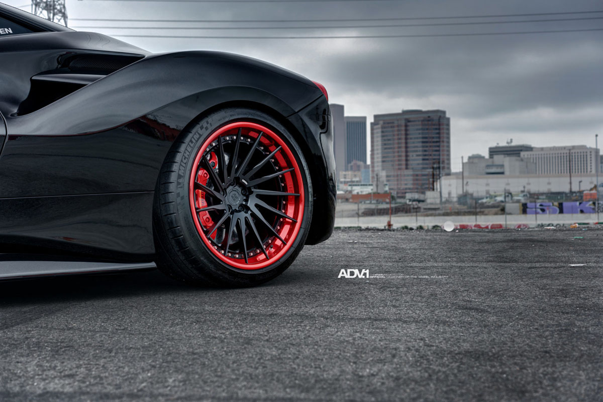 Do you like the Red and Black ADV15R Track Spec CS wheels on this Ferrari 488 GTB?
