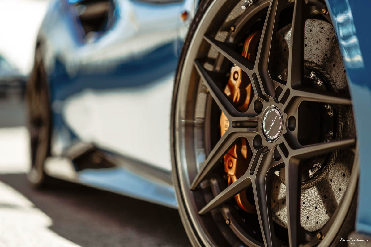 But what really sets it apart from the factory look are the new set of Brixton Forged WR7 Targa Series wheels. These three-piece forged wheels are weight-optimized with features such as floated spoke ends, lightweight step-lip rim halves, and backpad pocketing without sacrificing strength, making them perfect for super car applications.