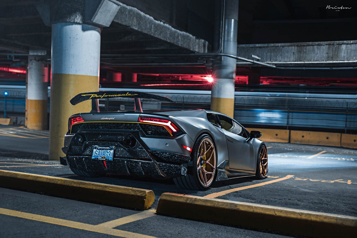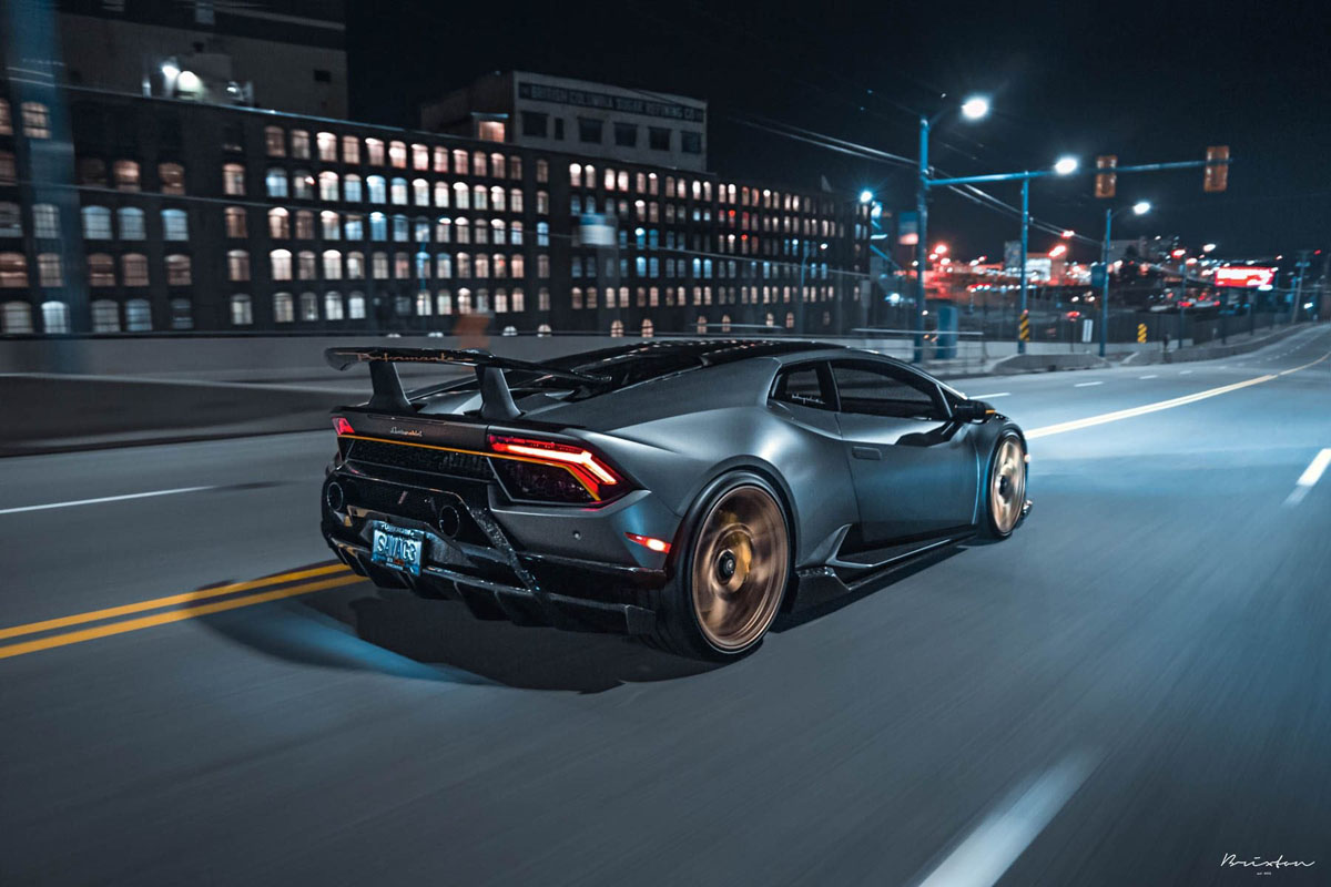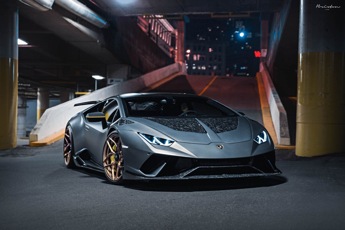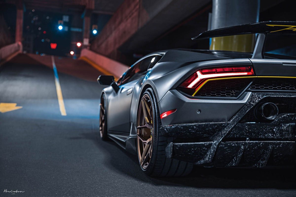 The Lamborghini Huracan LP 640-4 Performante is the pinnacle of performance for the model line. It’s an otherworldly exotic high-performance experience that has the ability to thrill in any situation. Entrepreneur and philanthropist, Kevin Gordon, owns one that’s been turned up to 11 by Wrapworkz Vancouver and MWDesign Technik, and is sporting a fresh set of custom tailored Brixton Forged wheels.